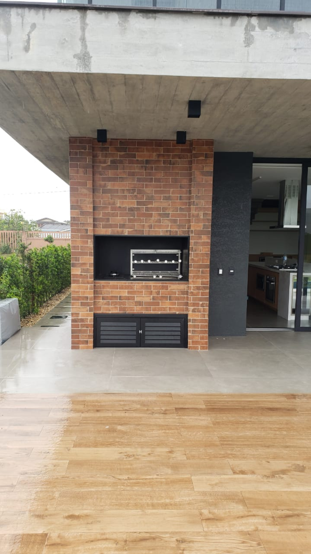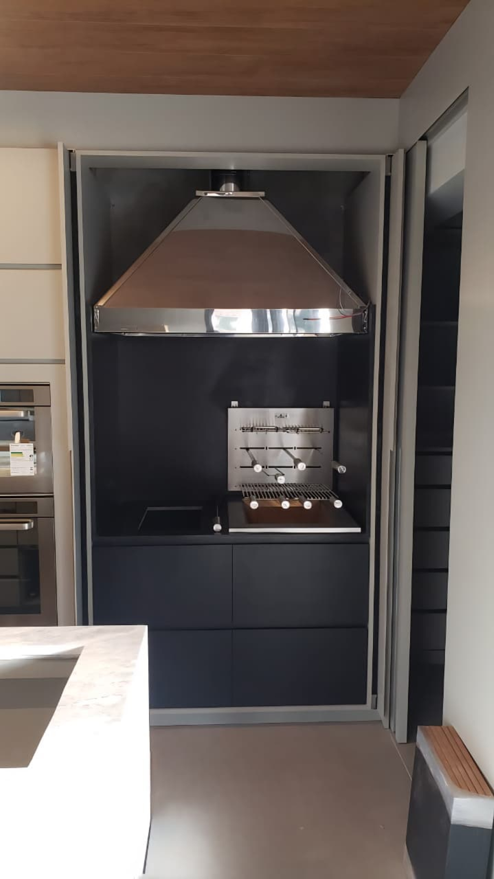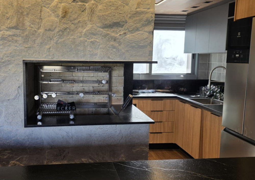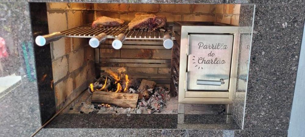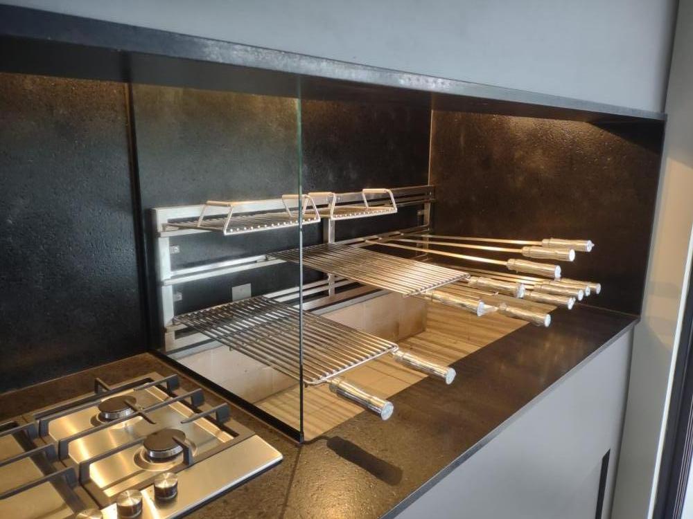Uma tendência nos espaços gourmet, onde se compõe o ambiente com uma parrilla e ao seu lado um Conjunto Suspenso. O espaço fica completo e o design incrível, além de proporcionar ao assador e seus convidados inúmeras possibilidades de cardápio.