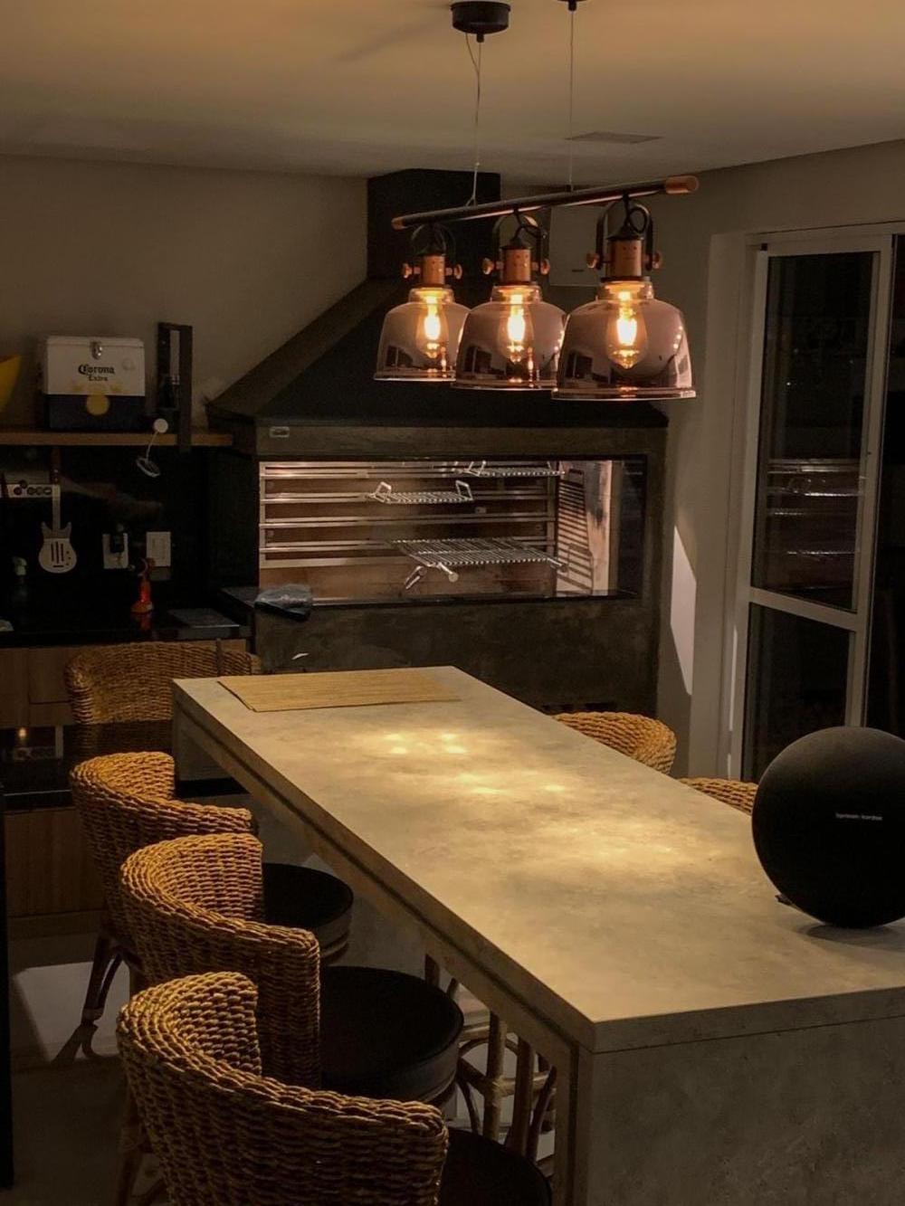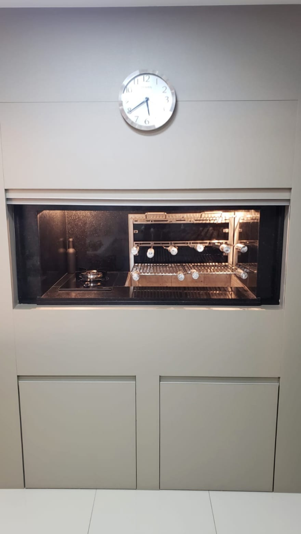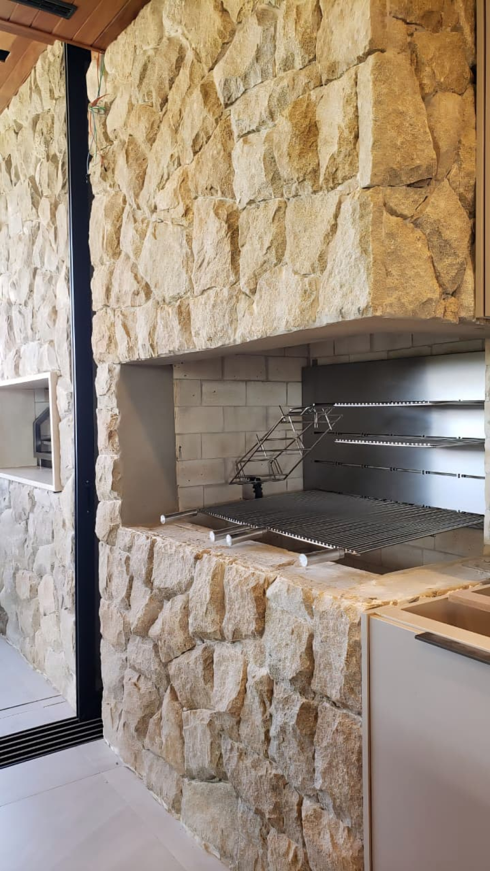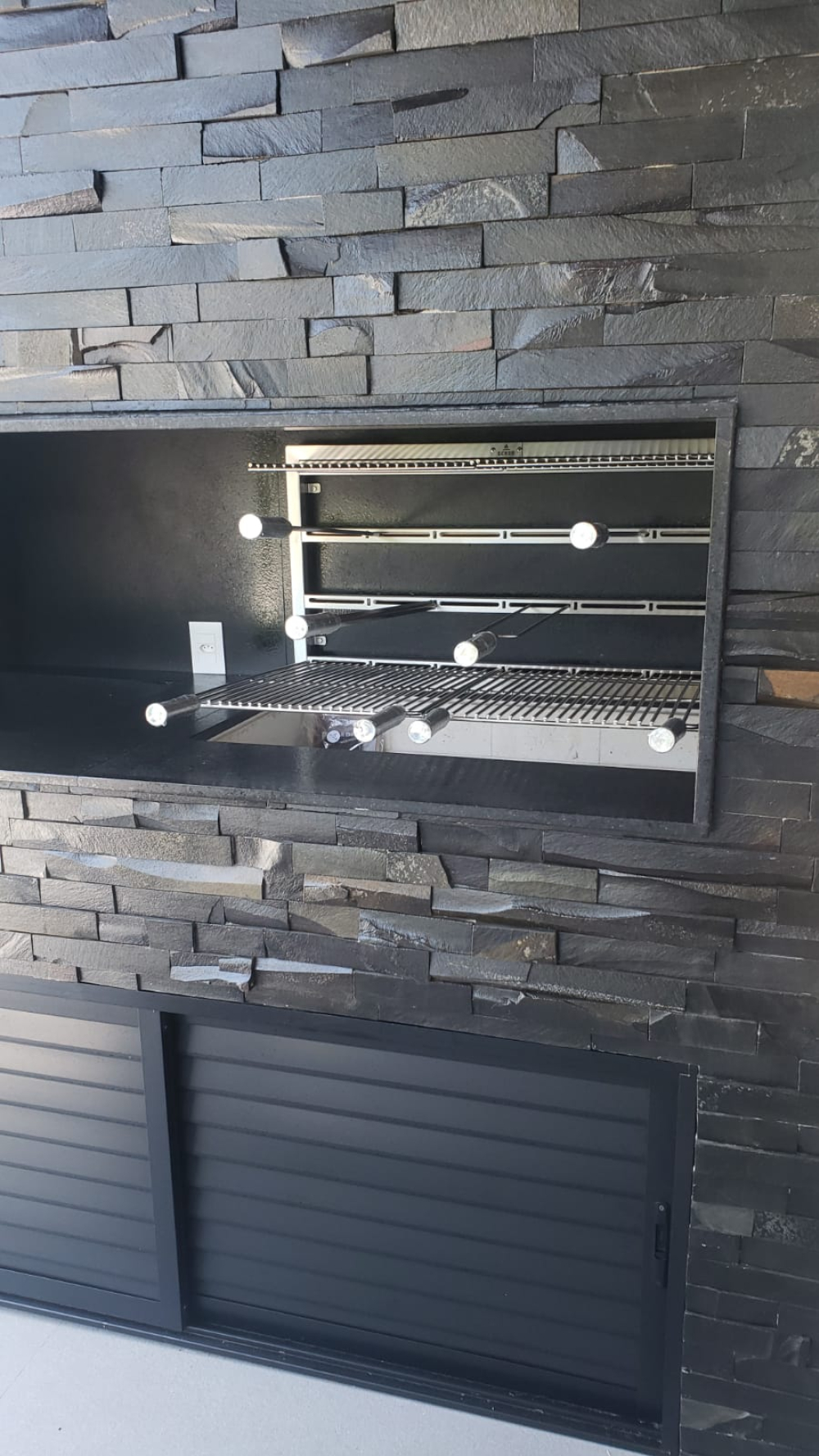 Uma tendência nos espaços gourmet, onde se compõe o ambiente com uma parrilla e ao seu lado um Conjunto Suspenso. O espaço fica completo e o design incrível, além de proporcionar ao assador e seus convidados inúmeras possibilidades de cardápio.