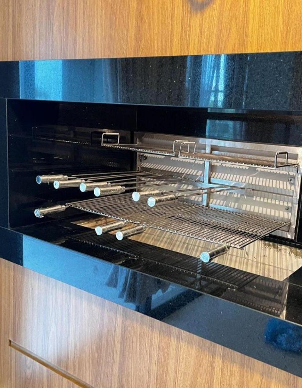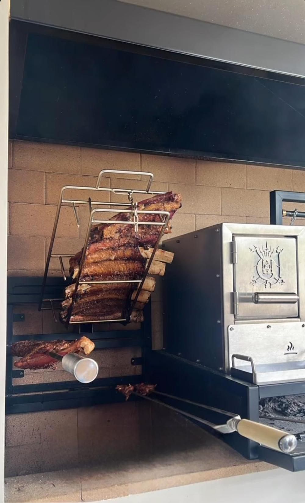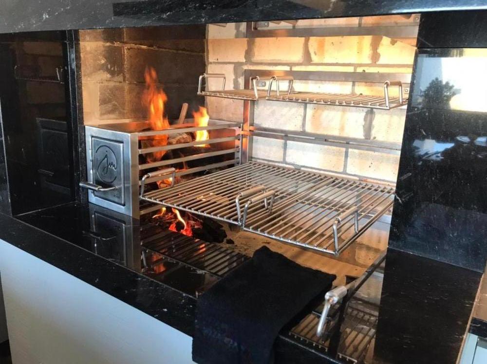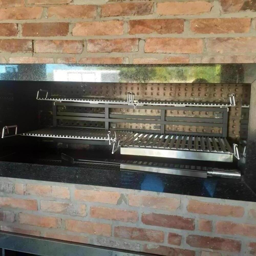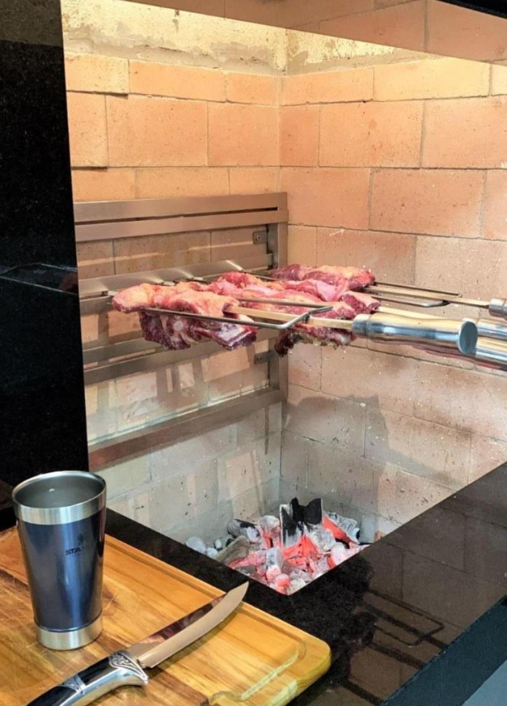 Um equipamento que não utiliza apoio frontal, onde os espetos e grelhas ficam suspensos proporcionando um design mais clean ao ambiente. Através de seus níveis de altura, existe uma flexibilidade de ajustes permitindo total controle sobre a intensidade do calor.